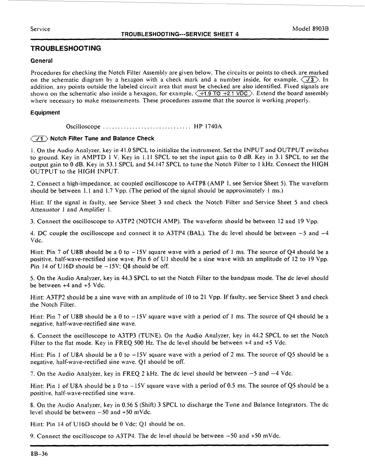 Procedures for checking the Notch Filter Assembly are given below. The circuits