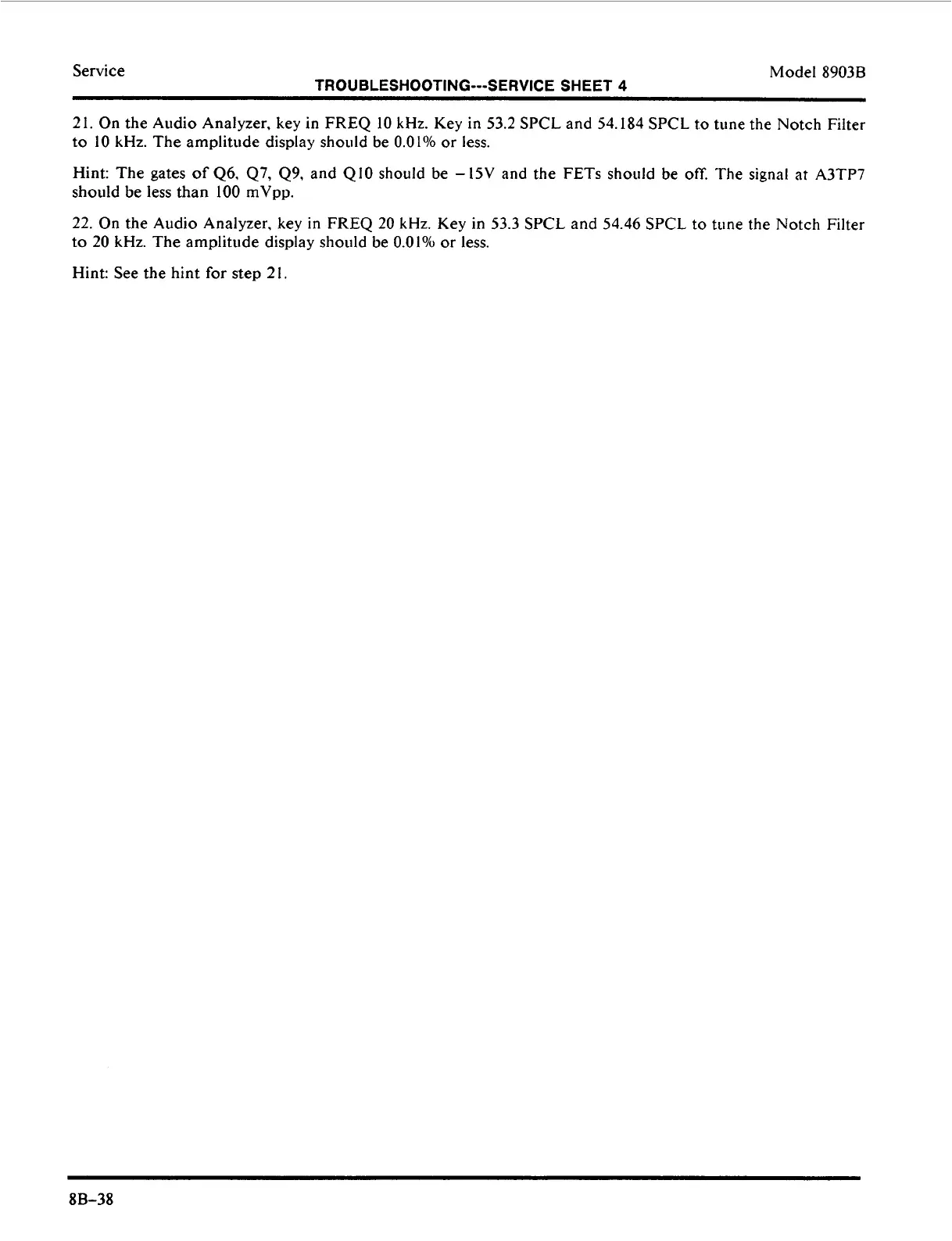 22. On the Audio Analyzer, key in FREQ 20