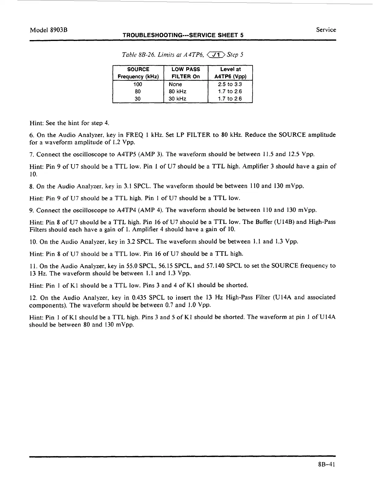 7. Connect the oscilloscope to A4TP5 (AMP 3). The waveform should be between