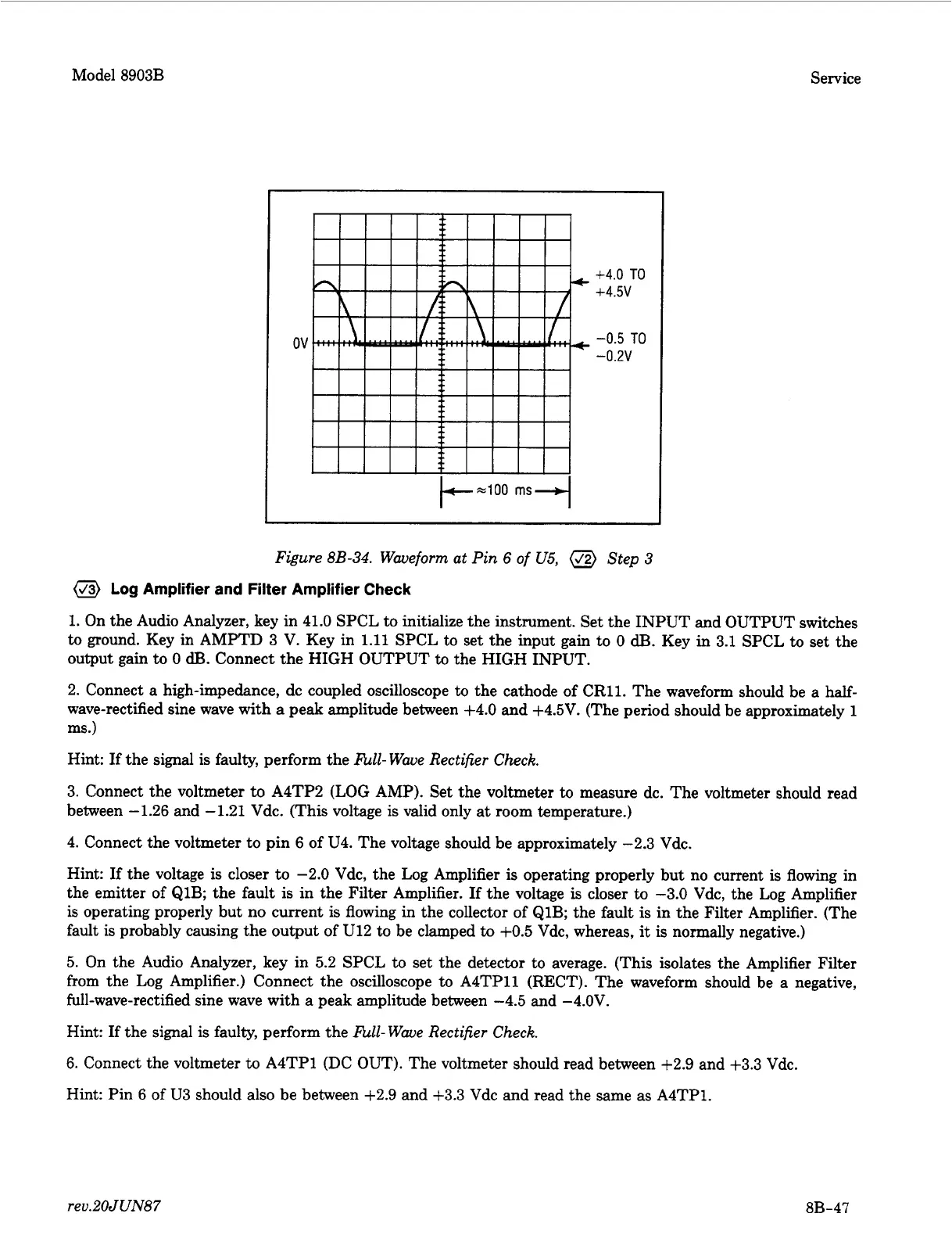 from the Log Amplifier.) Connect the oscilloscope to A4TP11 (RECT). The waveform should be a negative,