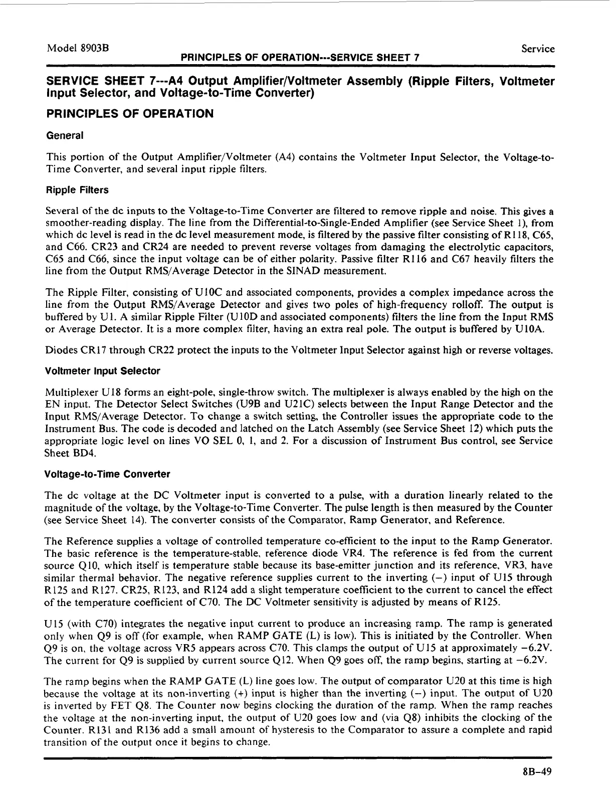 SERVICE SHEET 7---A4 Output Amplifier/Voltmeter Assembly (Ripple Filters, Voltmeter