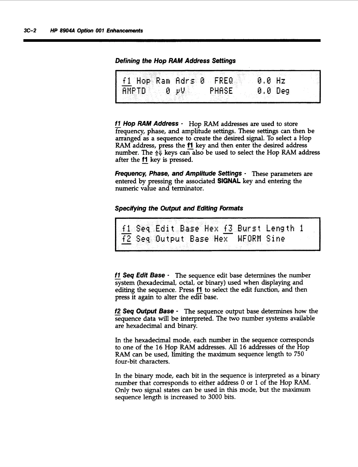 Fiequency, Phase, and Amplitude Settings
