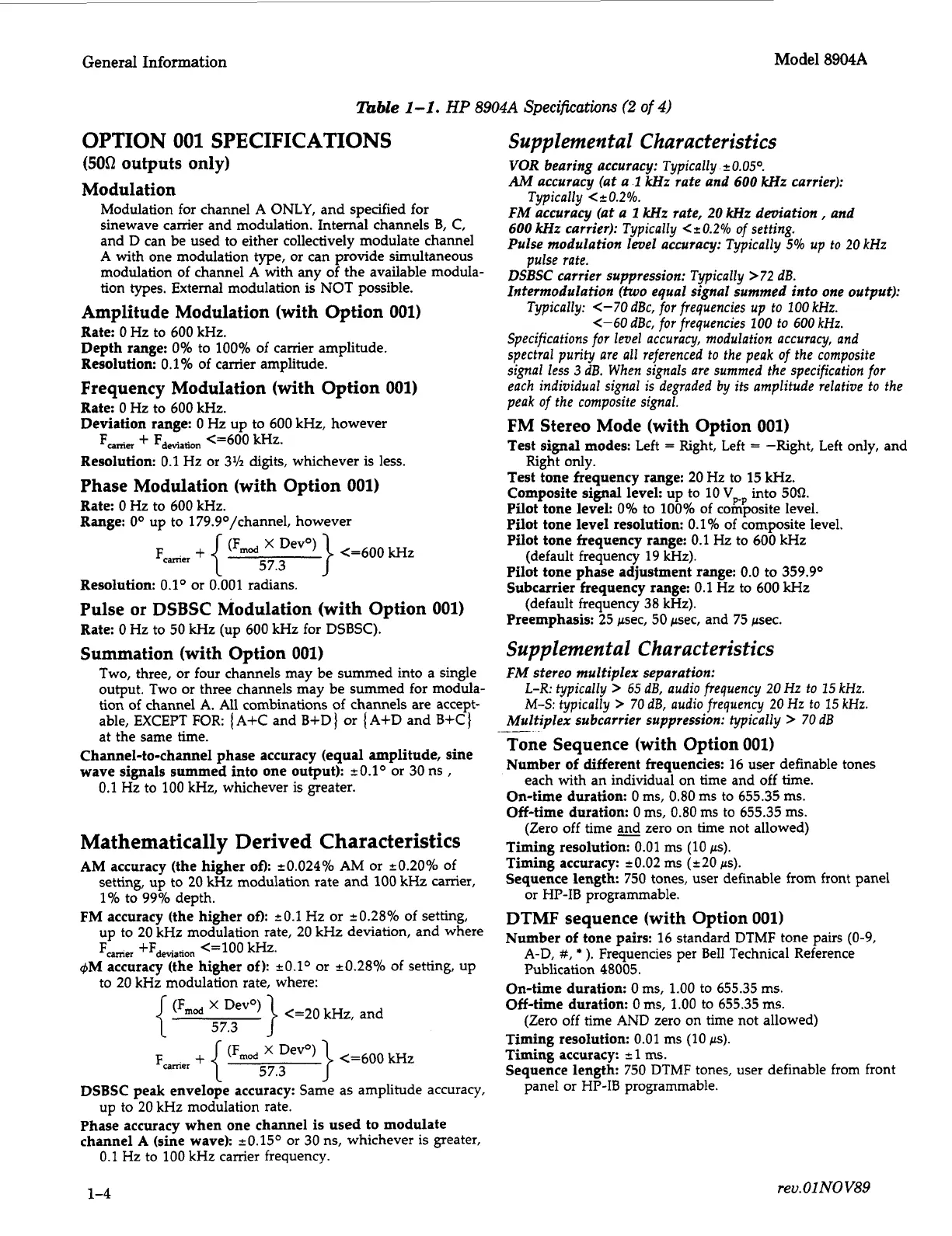 Specifications for level accuracy, modulation accuracy, and