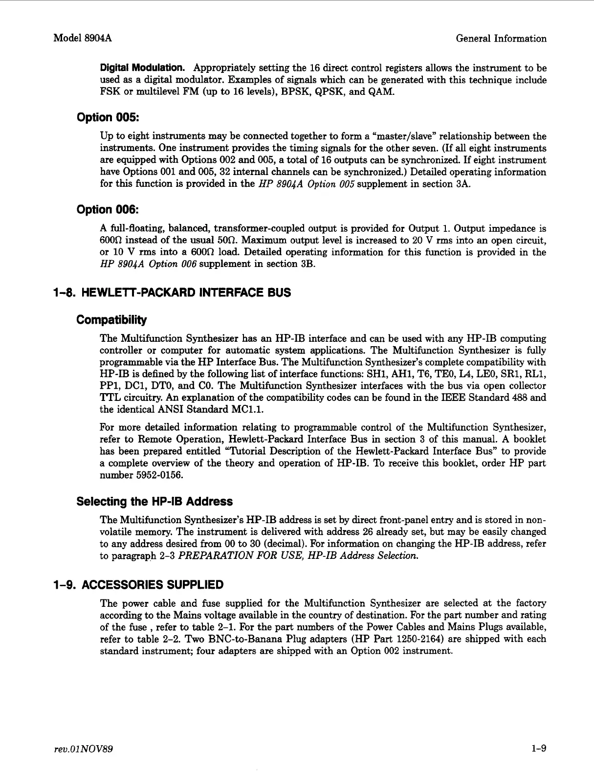 Model 8904A General Information
