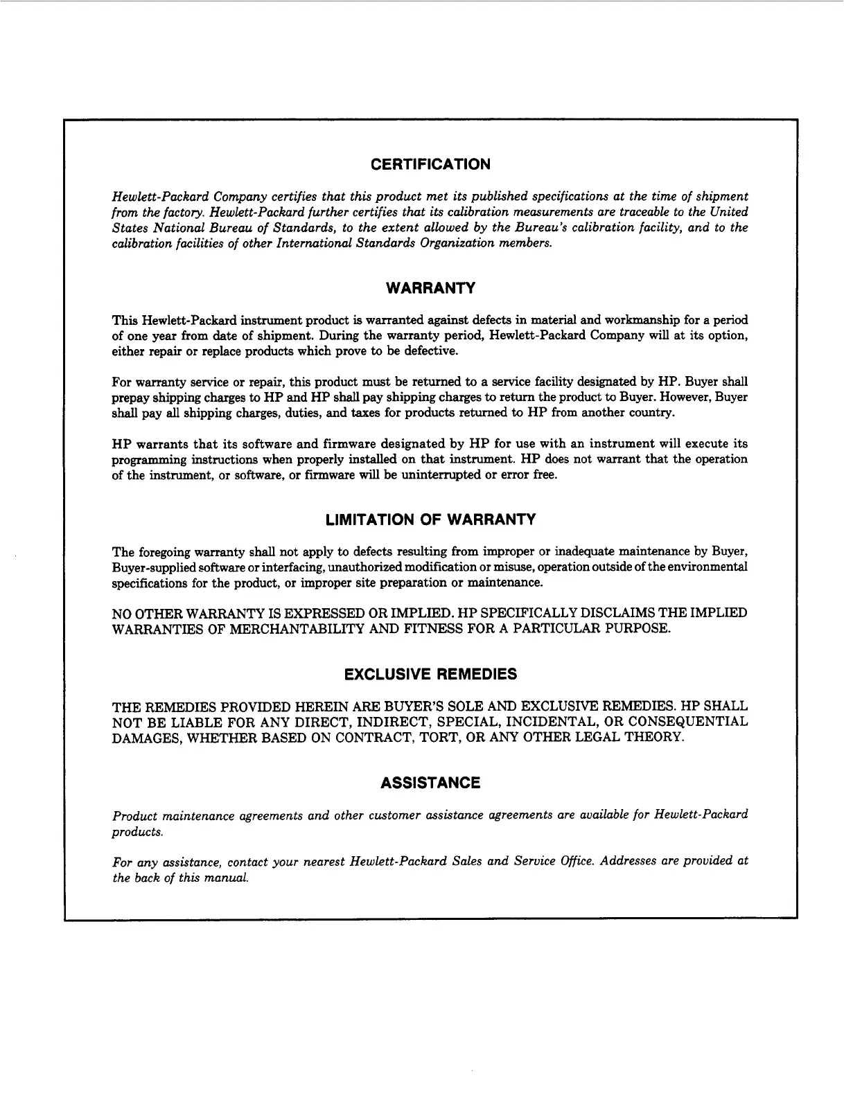 any assistance, contact your nearest Hewlett-Packard Sales and Service Office. Addresses are provided at