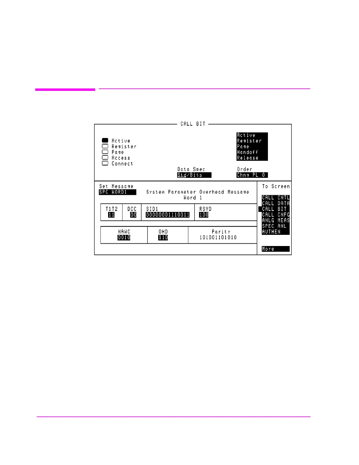 Figure 36 The CALL BIT Screen