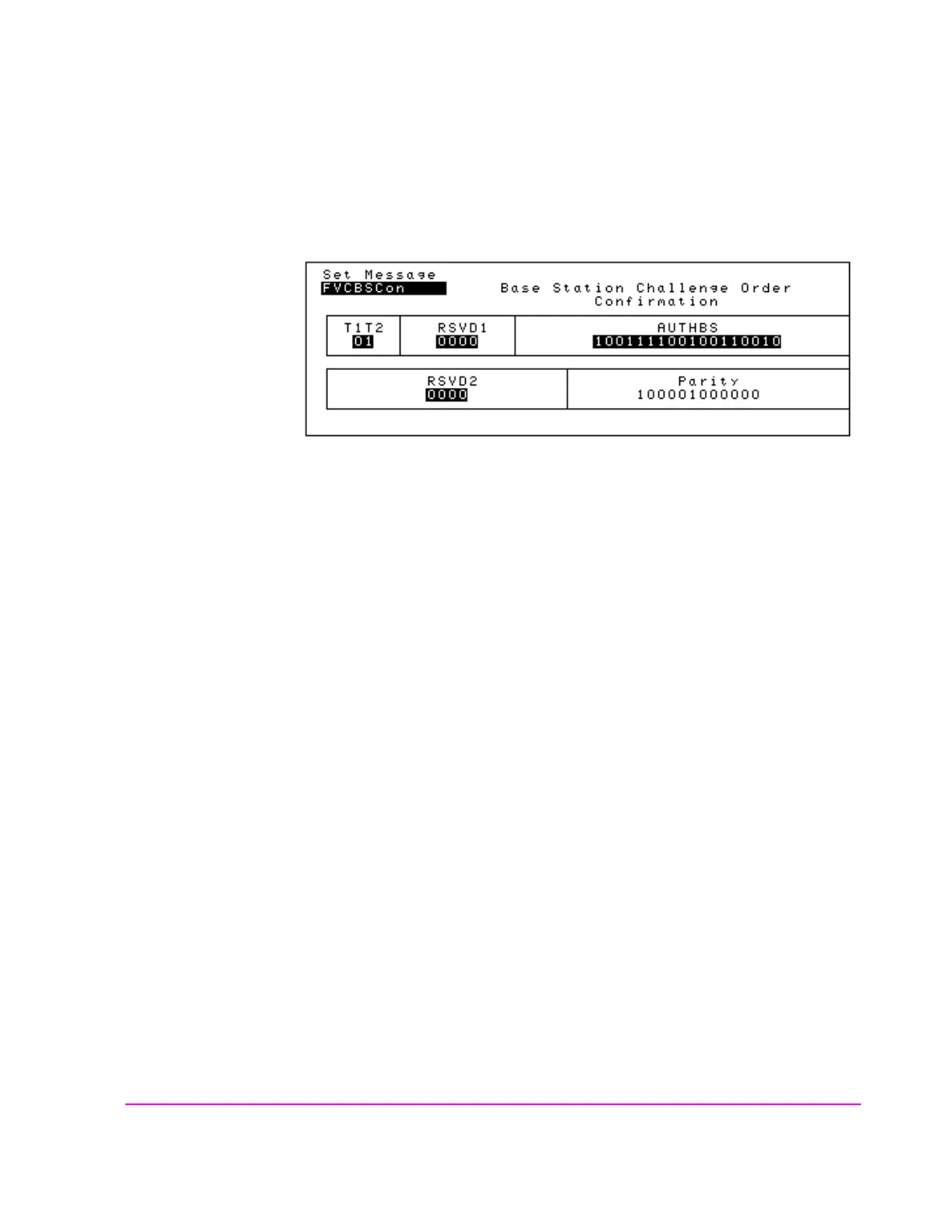 Parity field. The contents of the Parity field cannot be set by the user. The Test Set