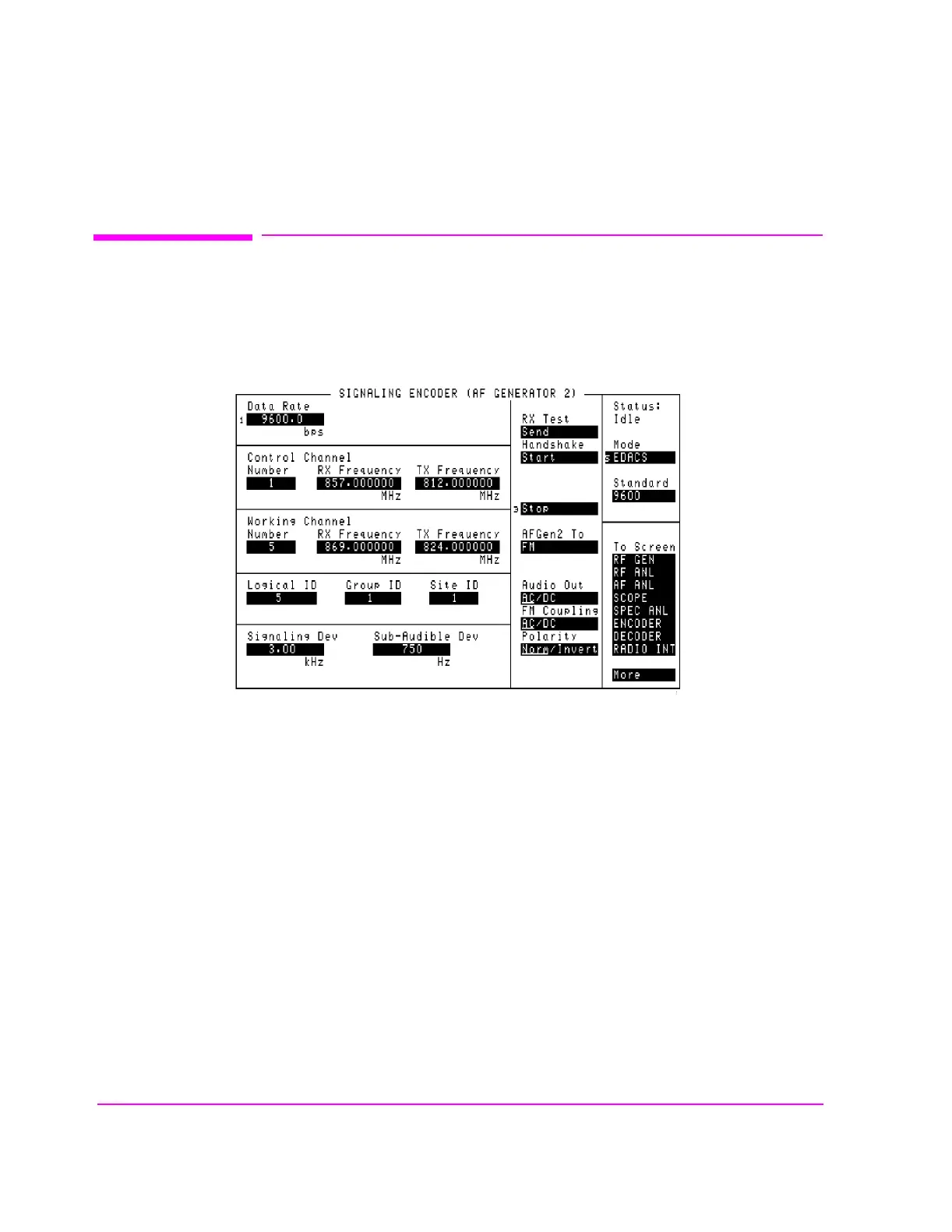 HP 8920A - EDACS Encoder; The EDACS Trunked Radio Encoder Mode Screen