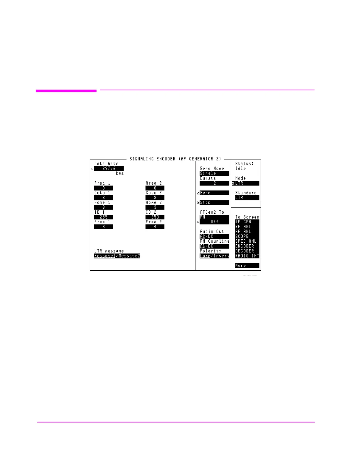 Figure 98 The LTR Trunked Radio Encoder Mode Screen