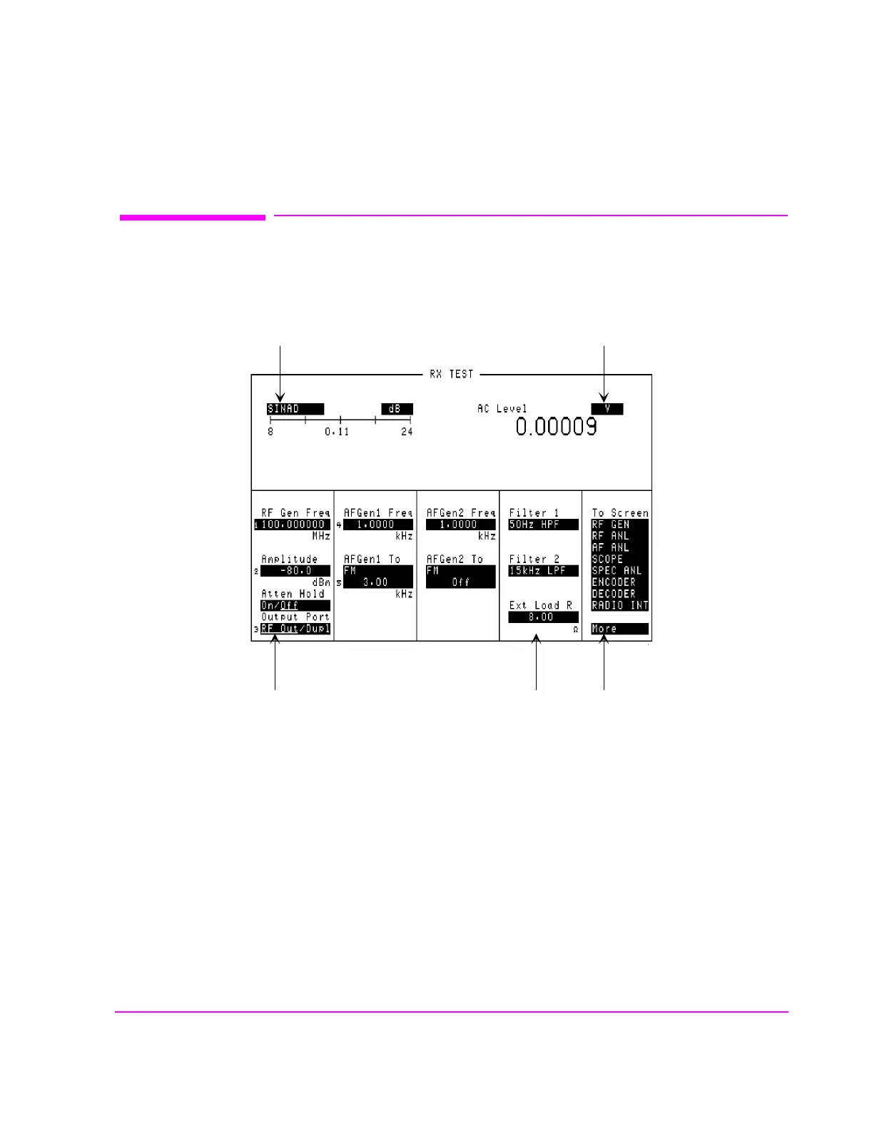 There are several types of CRT display fields in the Test Set. This section