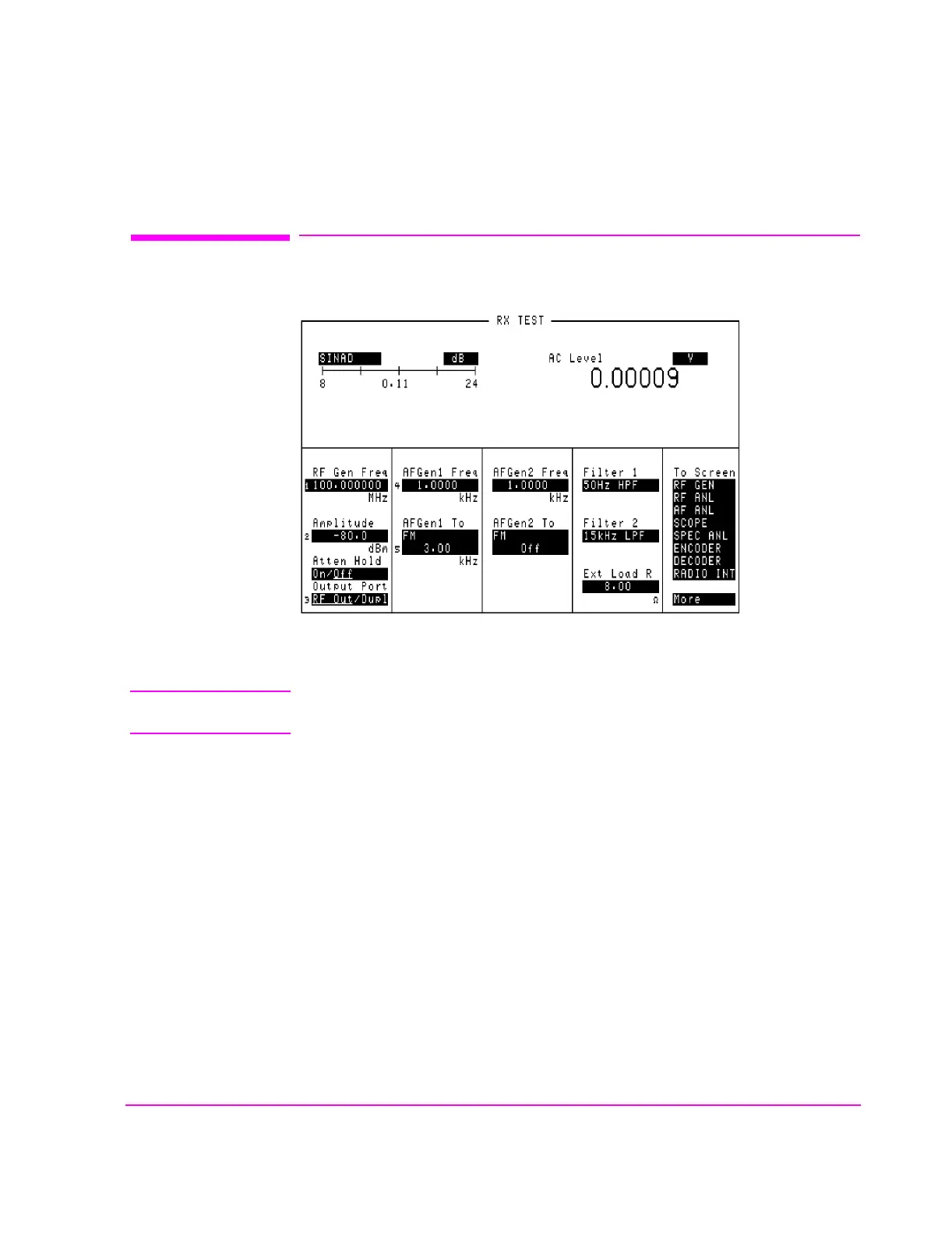 HP 8920A - The RX Test Screen