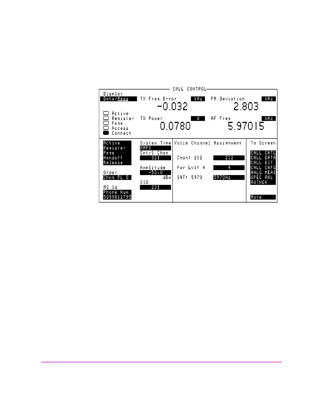 Figure 36 CALL CONTROL Screen with Meas Selected