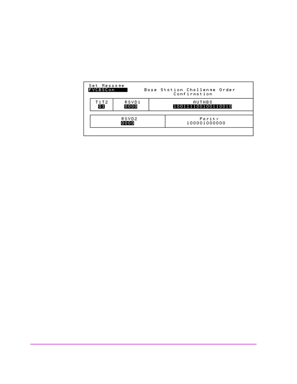 Parity field. The contents of the Parity field cannot be set by the user. The Test Set