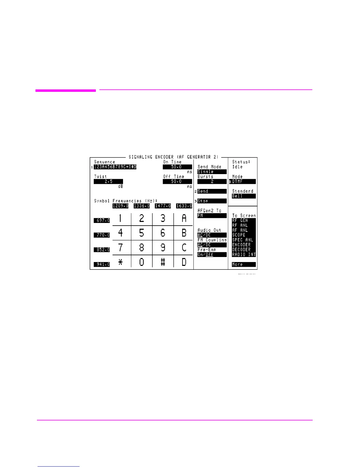 Figure 66 The DTMF Sequence Encoder Mode Screen