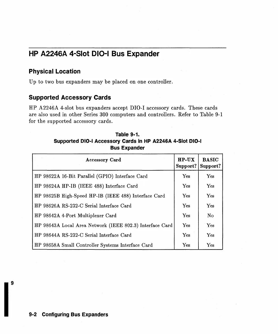 A2246A 4-slot bus expanders accept DIO-I accessory cards. These cards