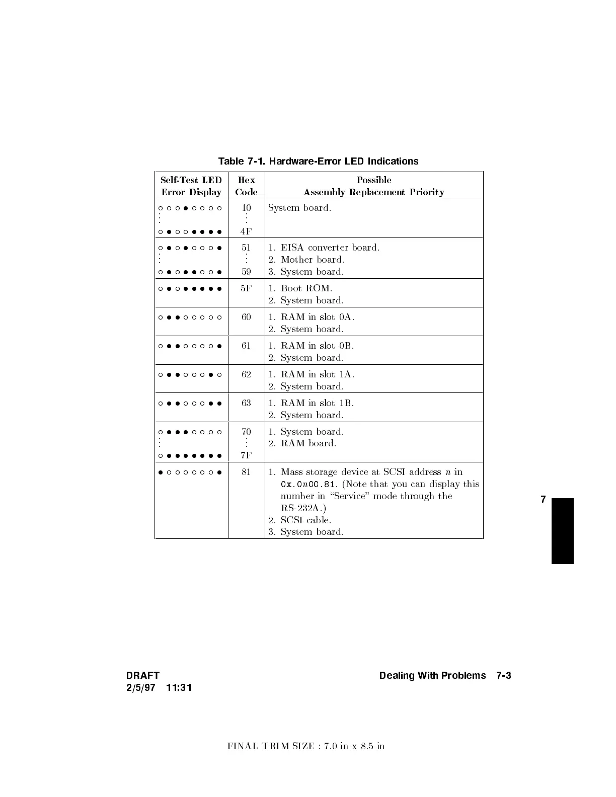 Table 7-1. Hardware-Error LED Indications