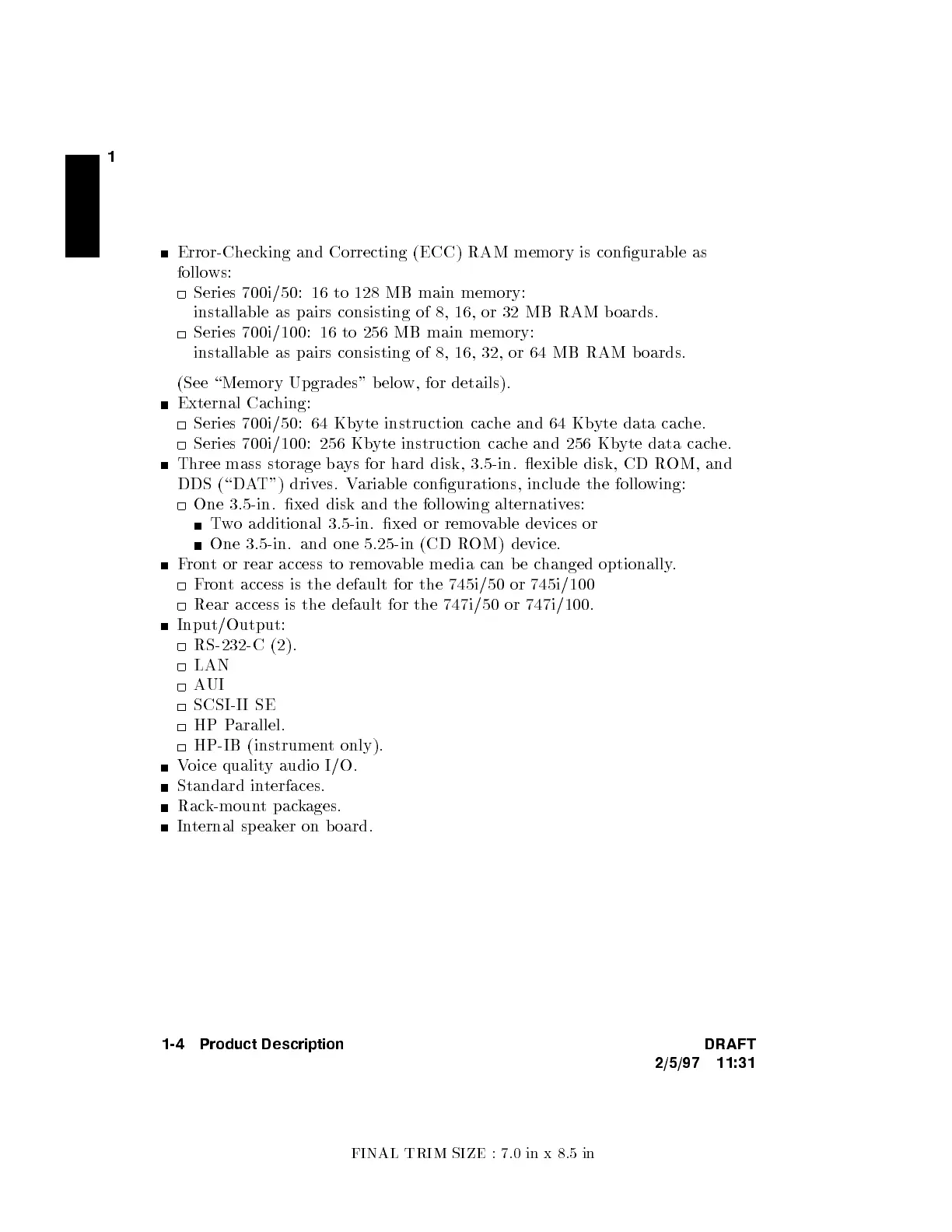 Series 700i/50: 64 Kbyte instruction cache and 64 Kbyte data cache.