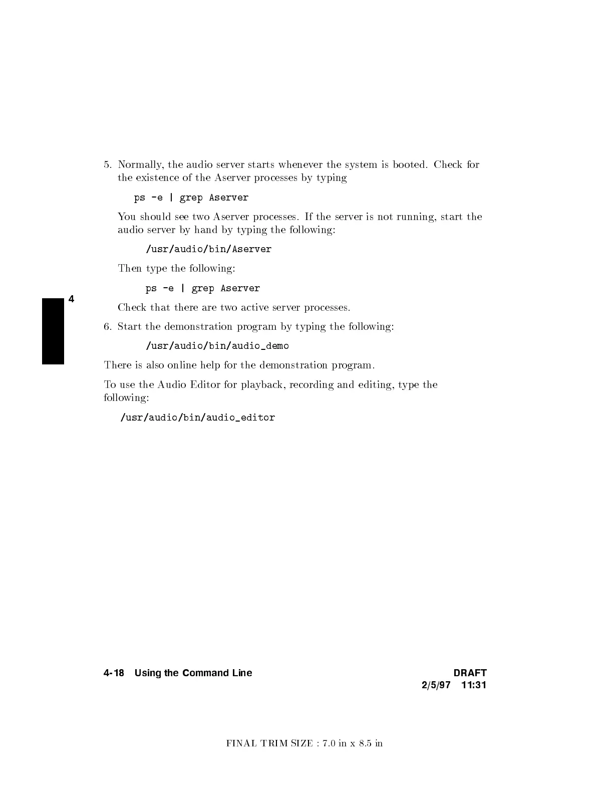 5. Normally, the audio server starts whenever the system is bo oted. Chec