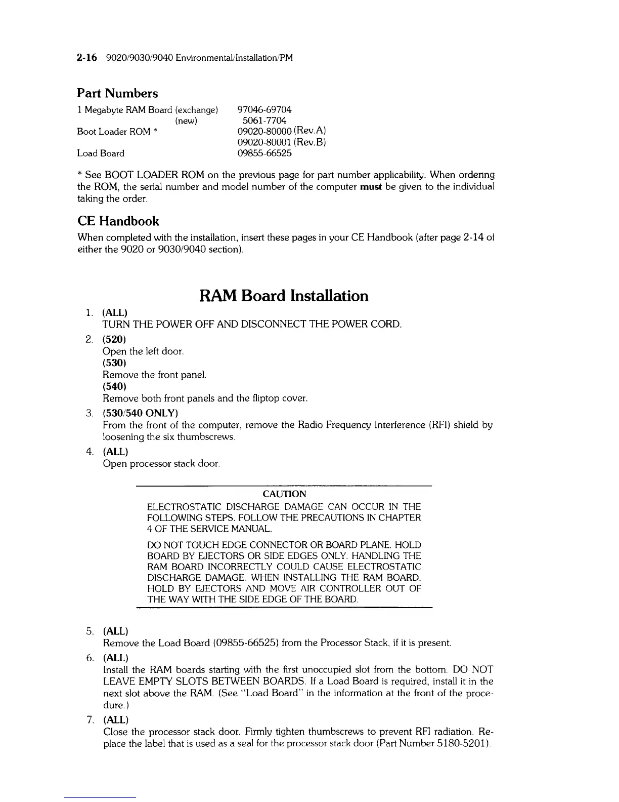 DISCHARGE DAMAGE. WHEN INSTALLING THE RAM BOARD.