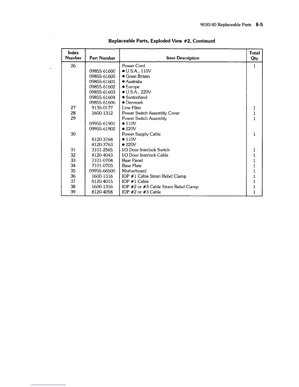 9030/40 Replaceable Parts