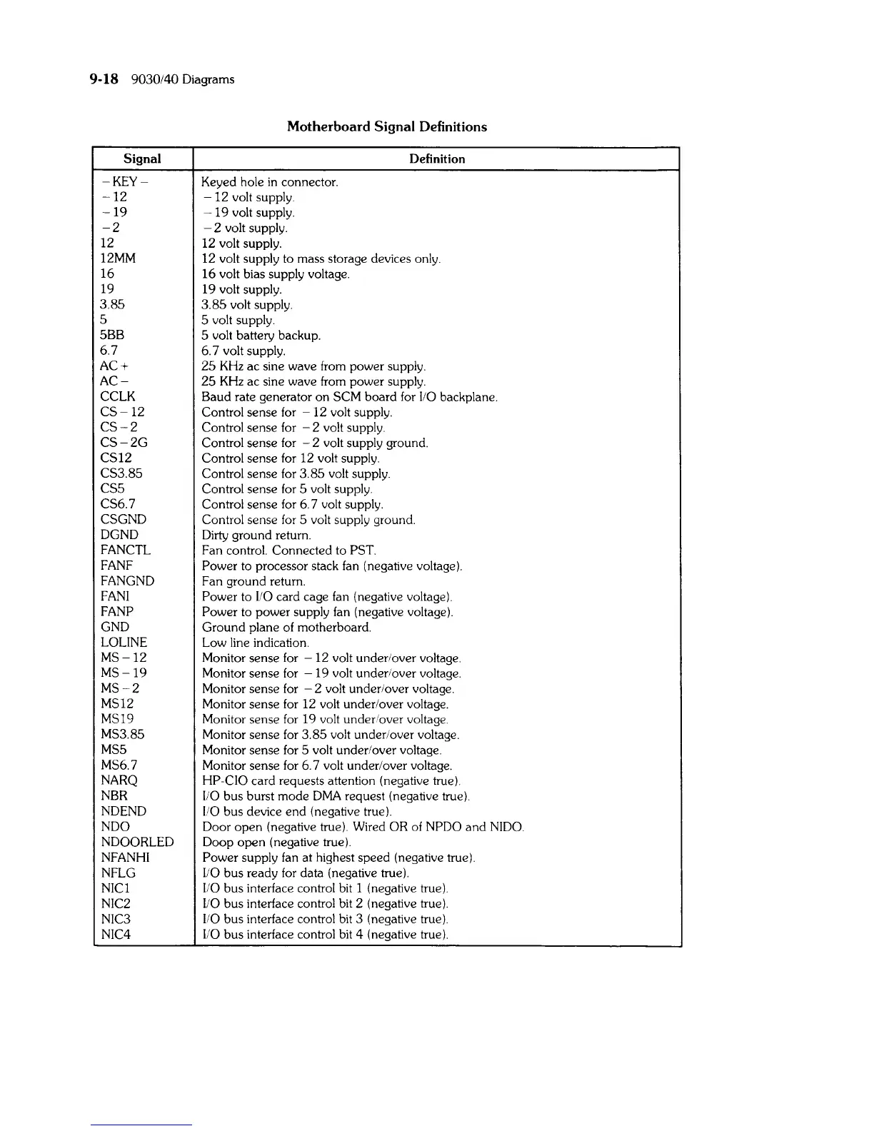 Motherboard Signal Definitions