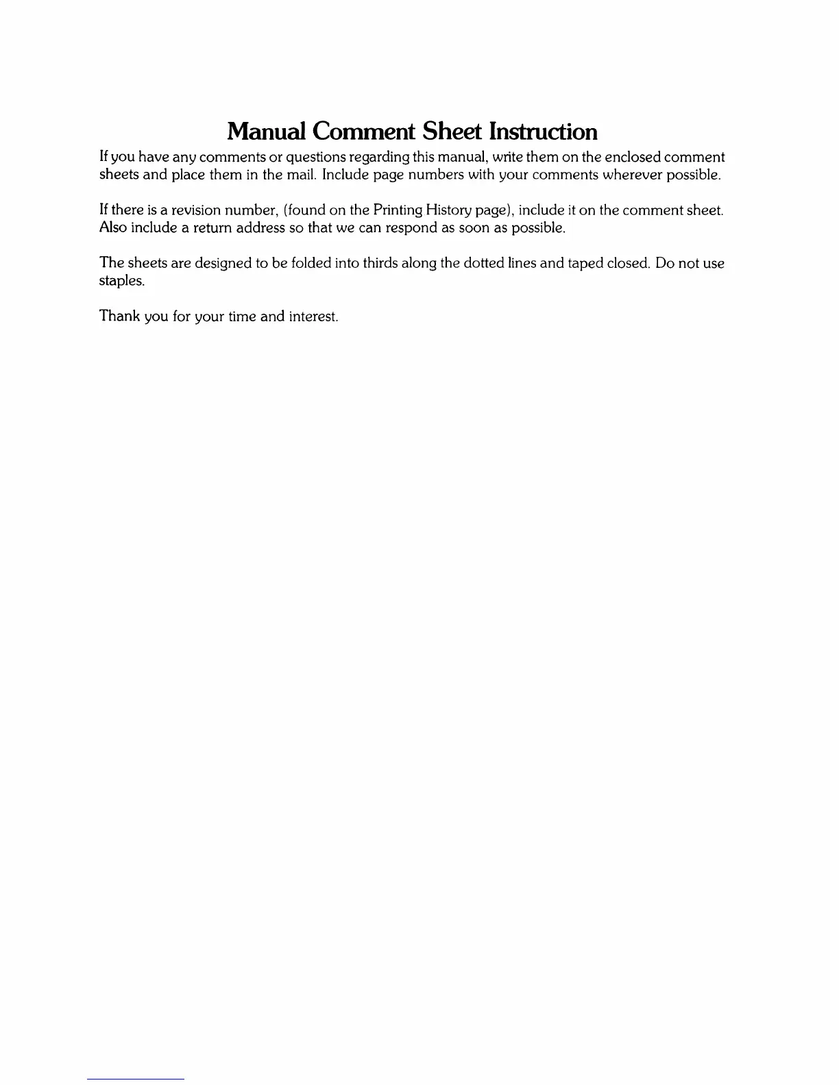 If you have any comments or questions regarding this manual, write them on the enclosed comment