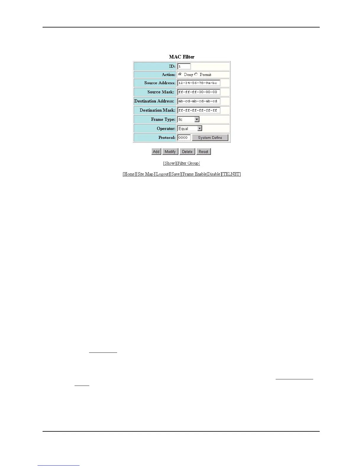 • If you are modifying an existing MAC filter group, click on the Modify button to the right of the row