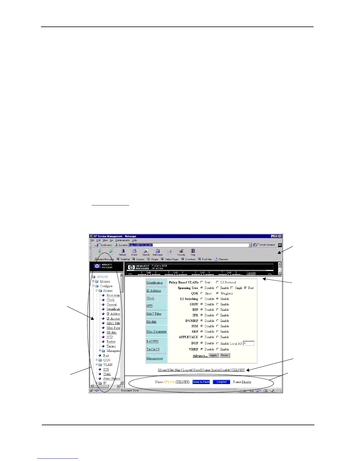 The left pane of the Web management interface window contains a “tree view,” similar to the one found in