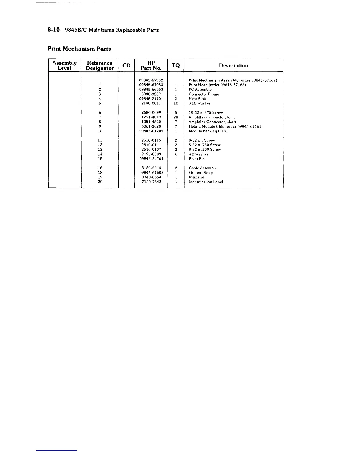 9845B/C Mainframe Replaceable Parts