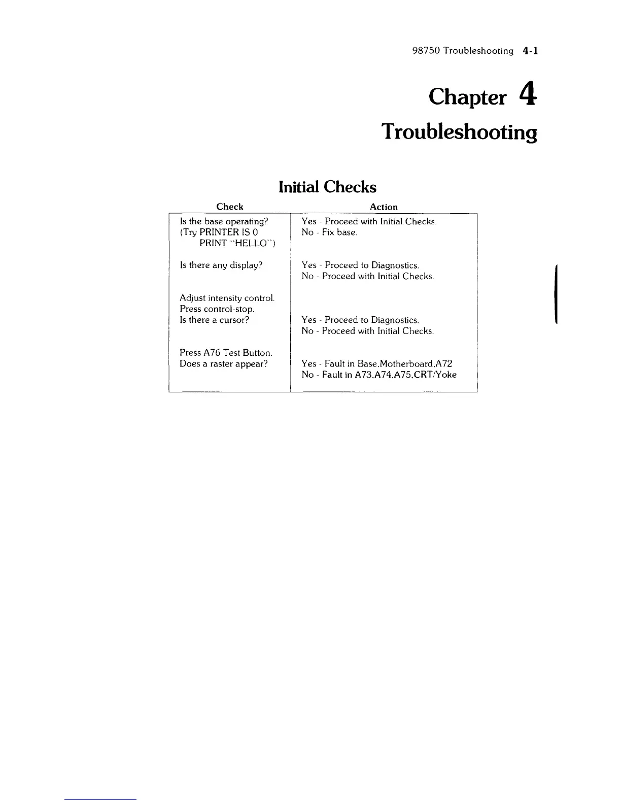HP 9800 - Troubleshooting; Initial Checks