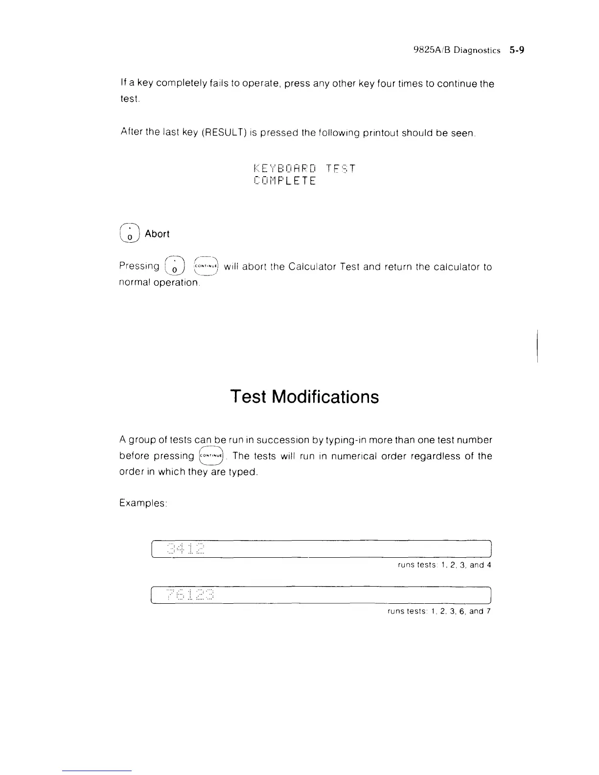 will abort the Calculator Test and return the