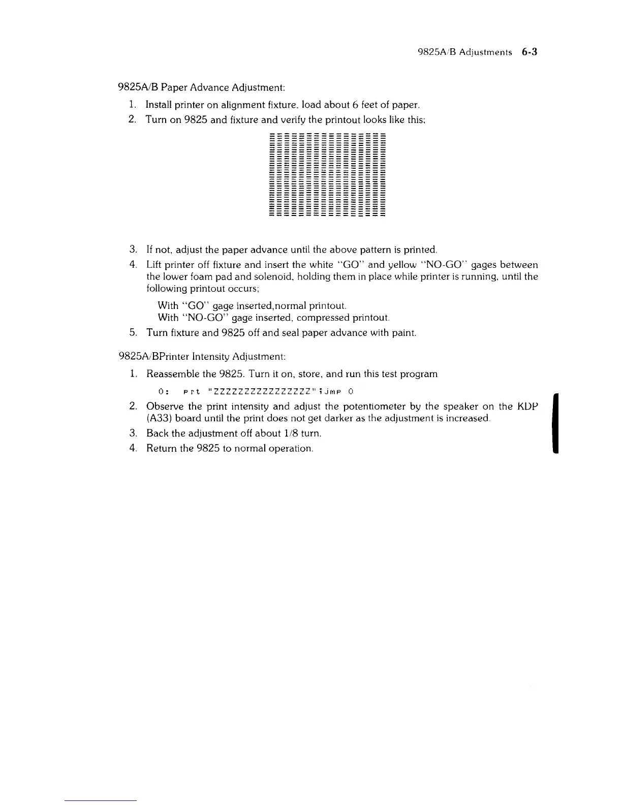 9825AiBPrinter IntenSity Adjustment: