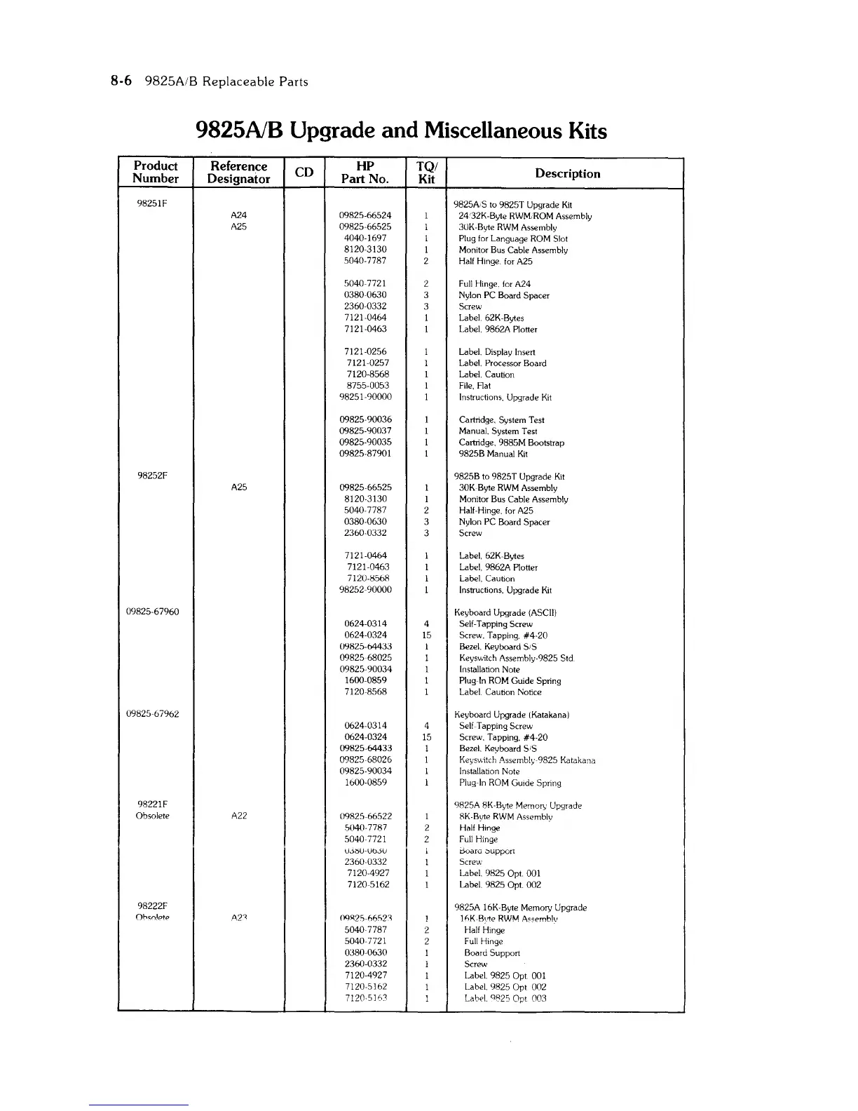 9825A 16K-Byte Memory Upgrade