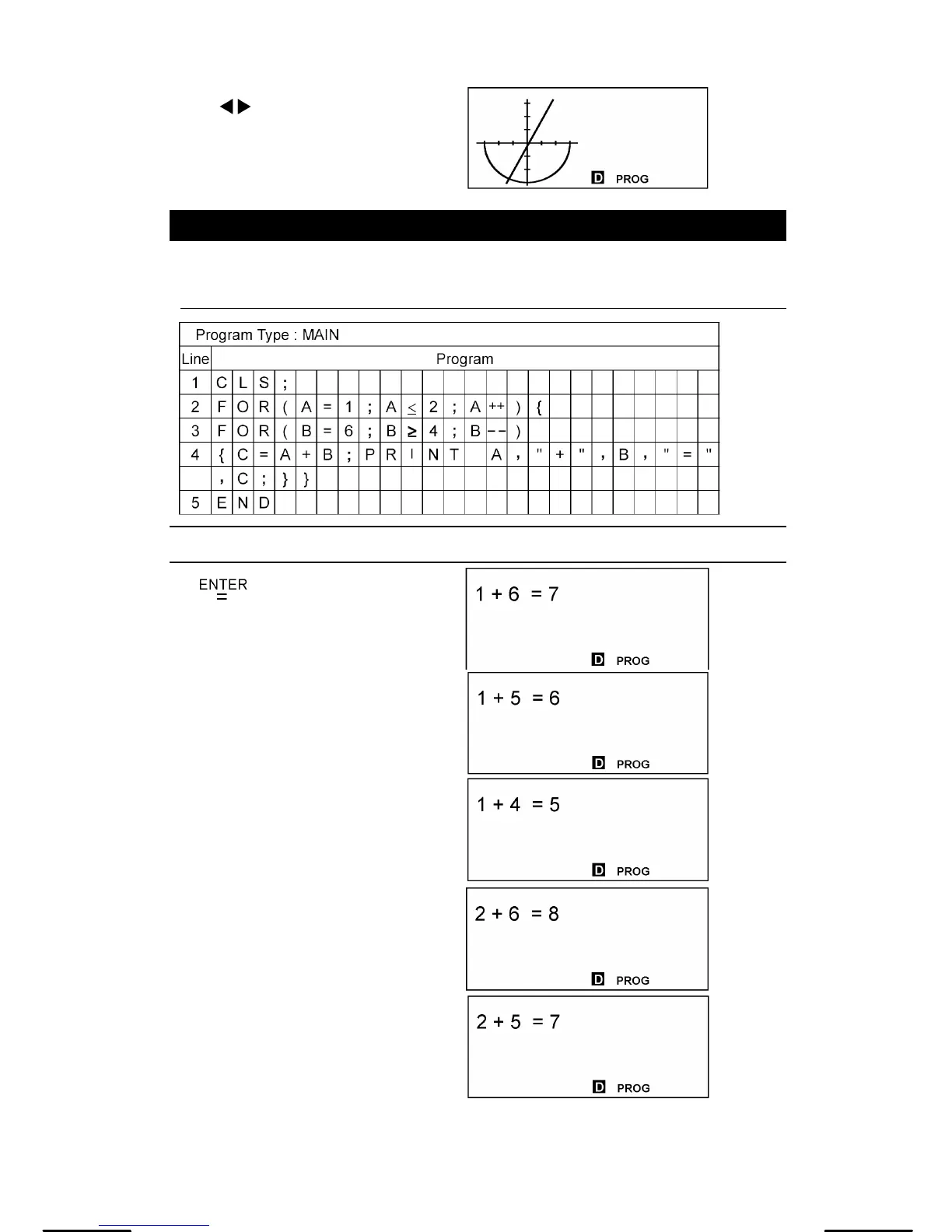 Use a FOR loop to calculate 1 + 6 = ? , 1 + 5 = ? 1 + 4 = ?, 2 + 6