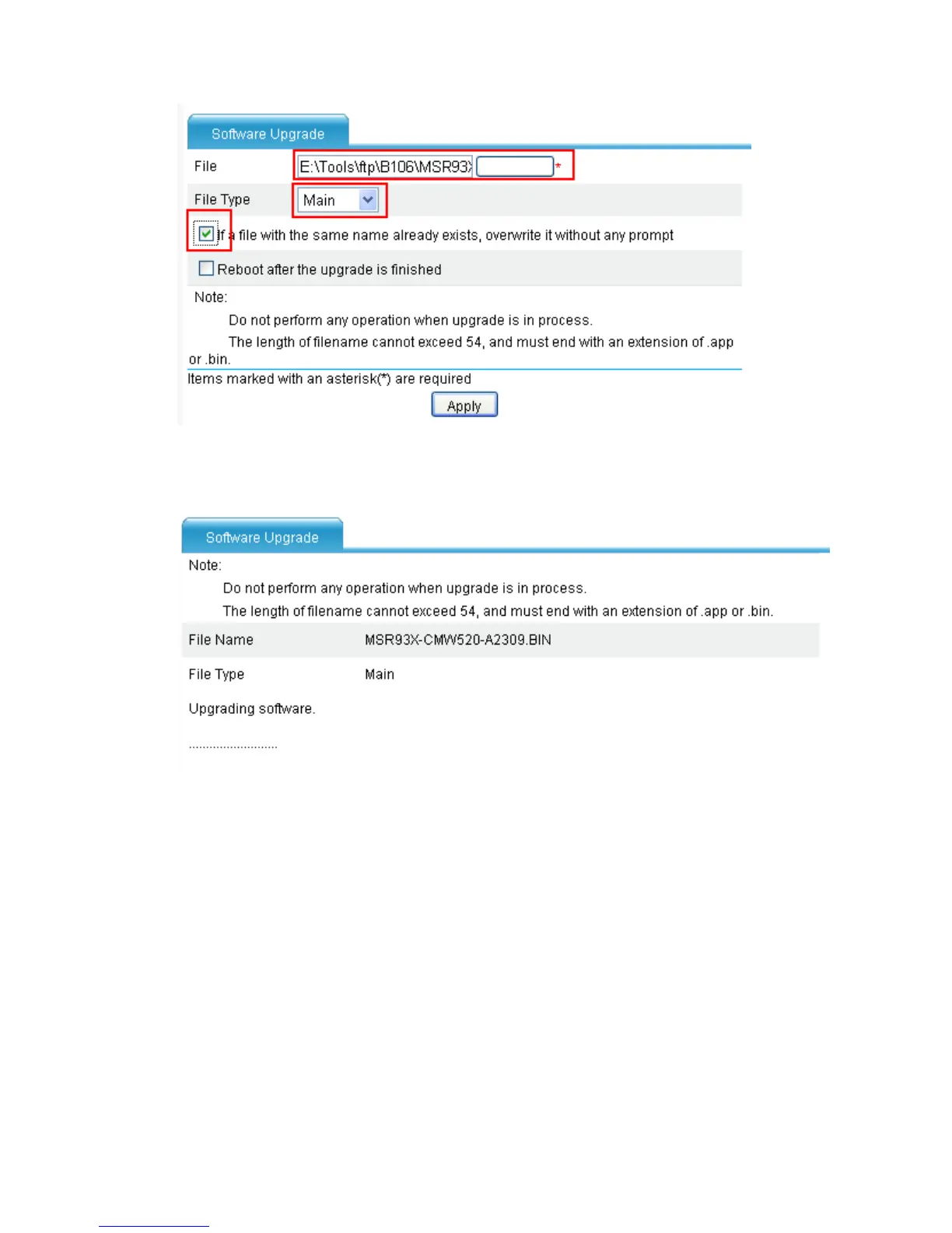 The upgrade process takes about three to five minutes. During this process, ensure that the