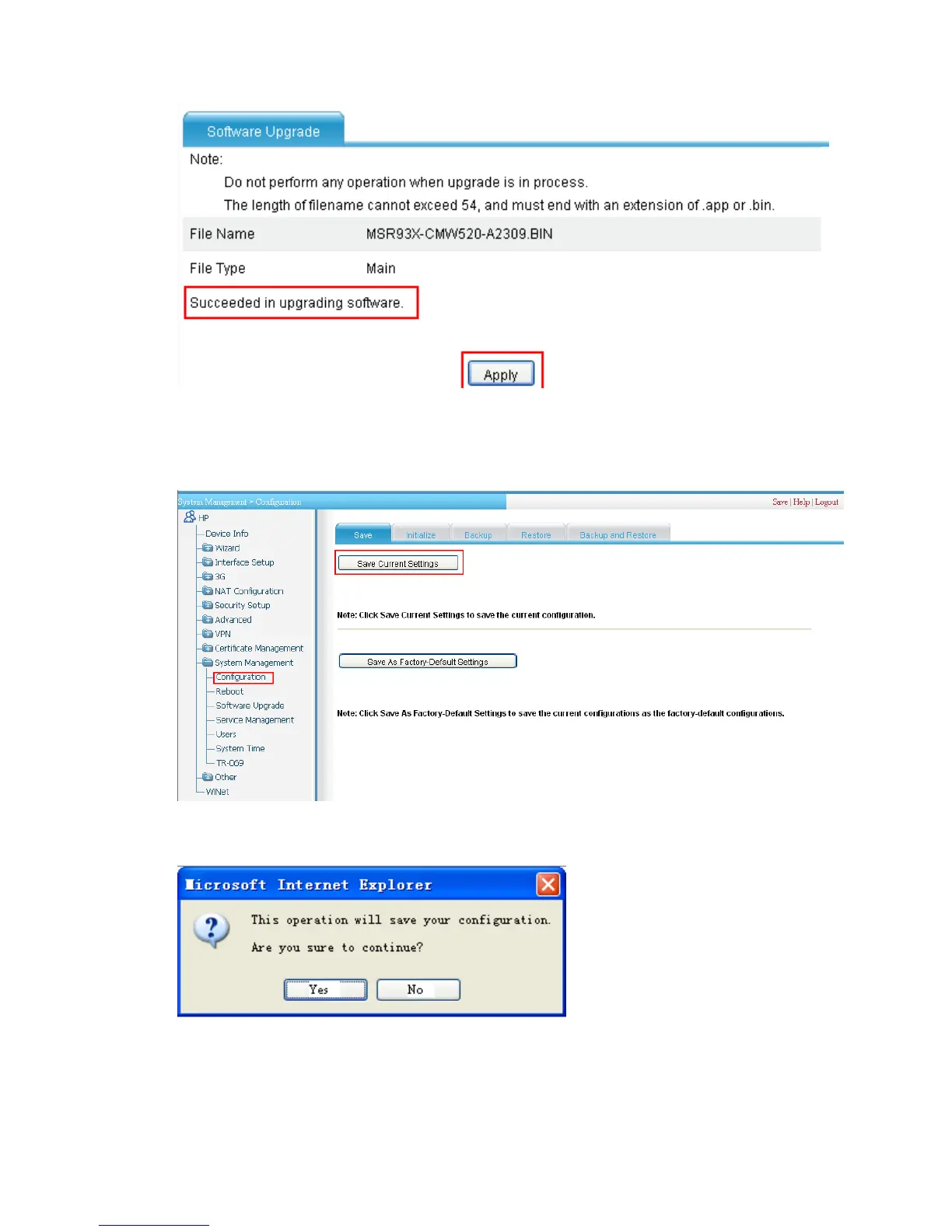 Save page, and then click Save Current Settings, as shown in the following figure.