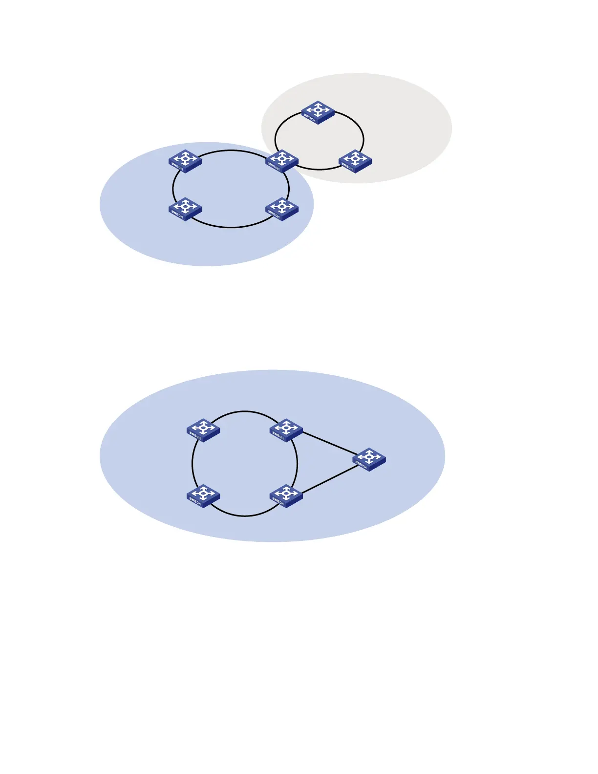 As shown in Figure 17, two or more rings are in the dual-homed rings network topology, with two similar