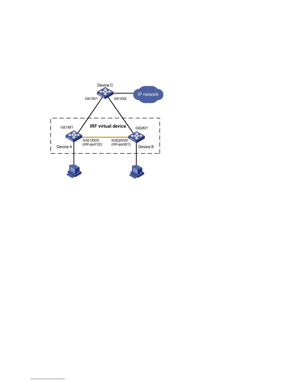 and DeviceC, respectively, before the IRF virtual device is formed.