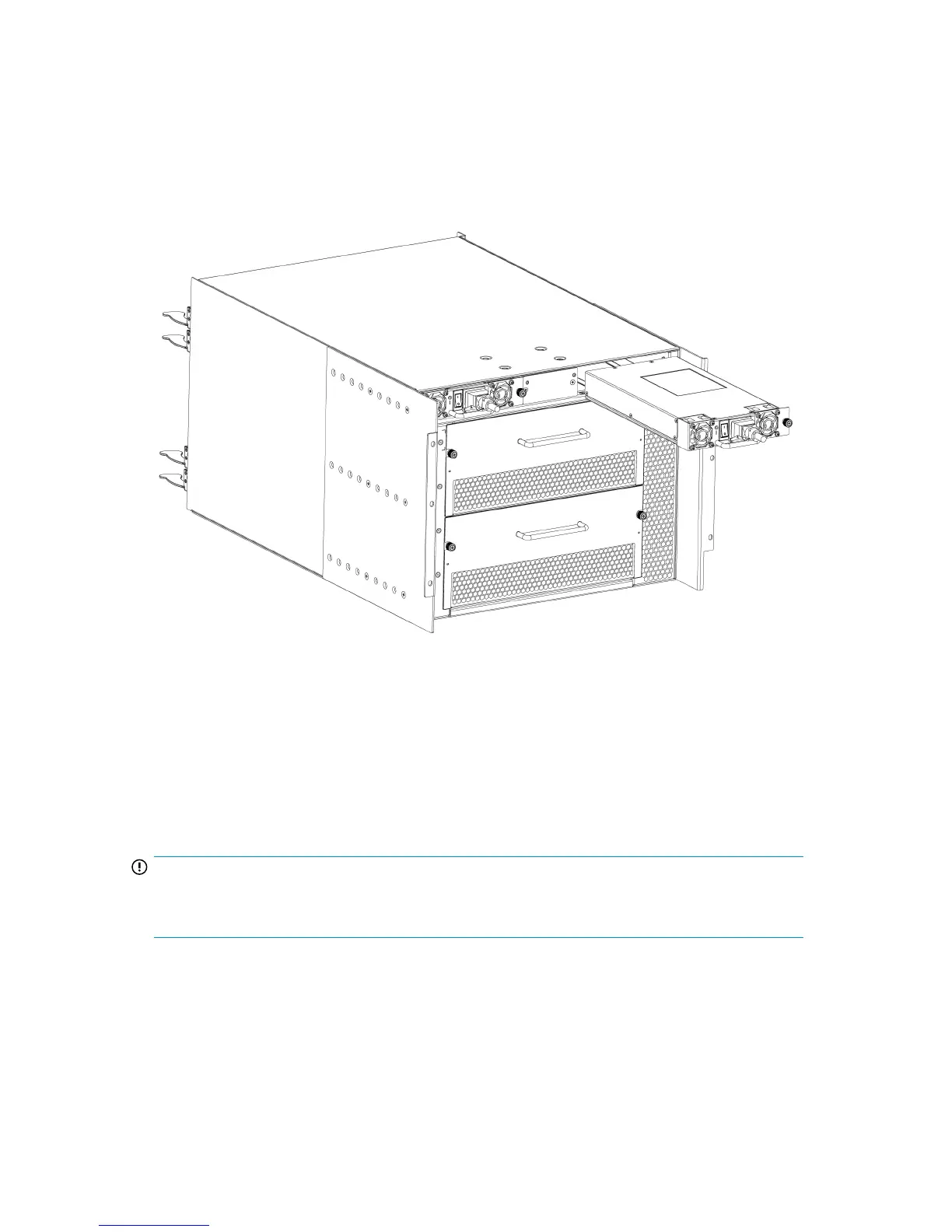 2. Insert the power supply into the slot and push the handle up. Verify that the power supply is