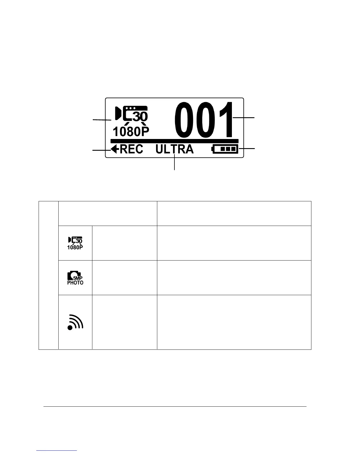 When the camcorder is turned on, the OLED screen displays the following