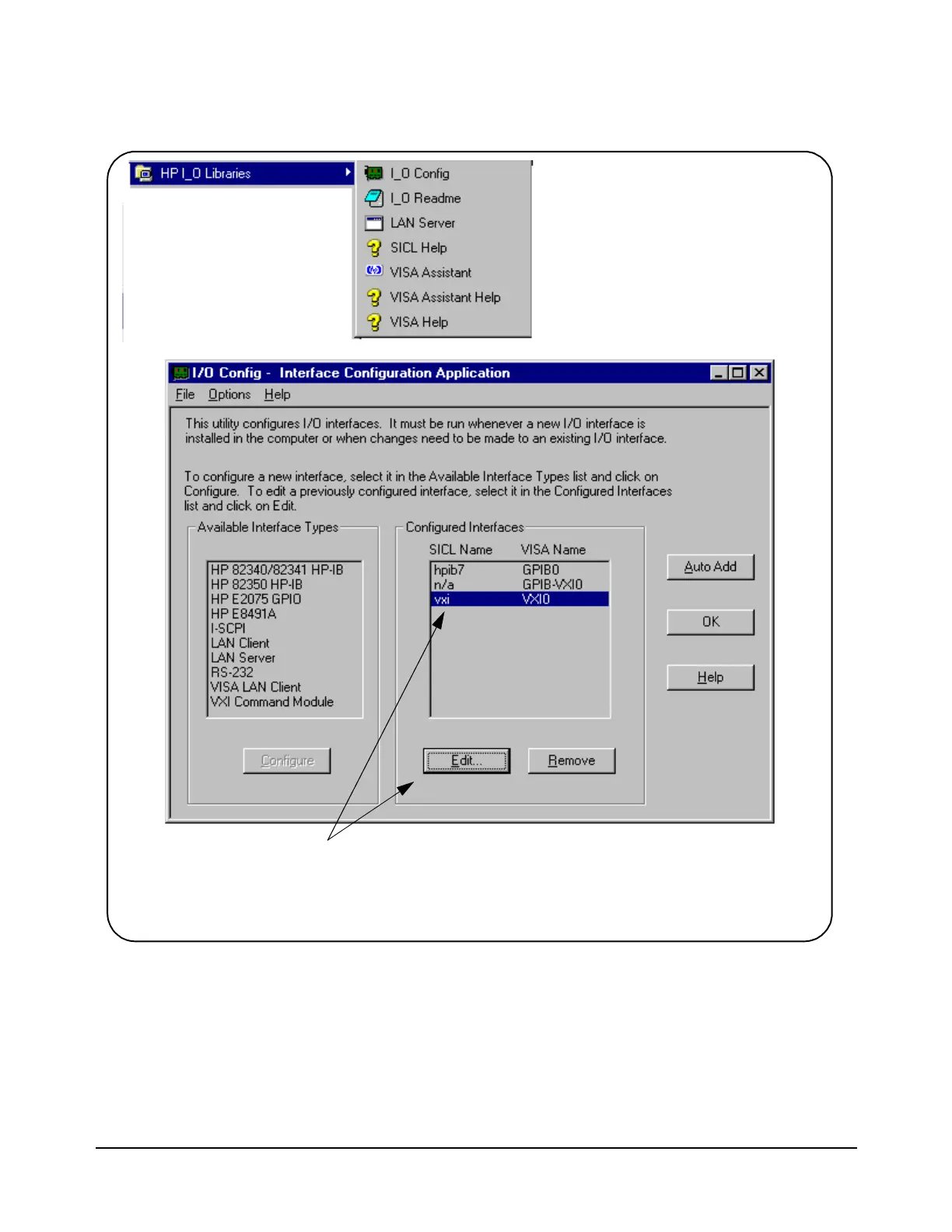 Figure B-1. Editing Configuration Files from the ‘I_O Config’ Utility.