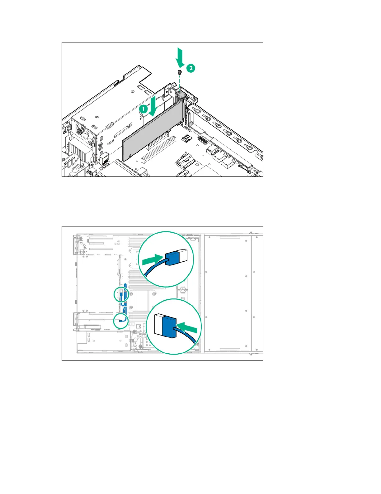— Four-bay LFF rear drive cage – P440 controller Mini-SAS Y-cable connection from the PCIe
