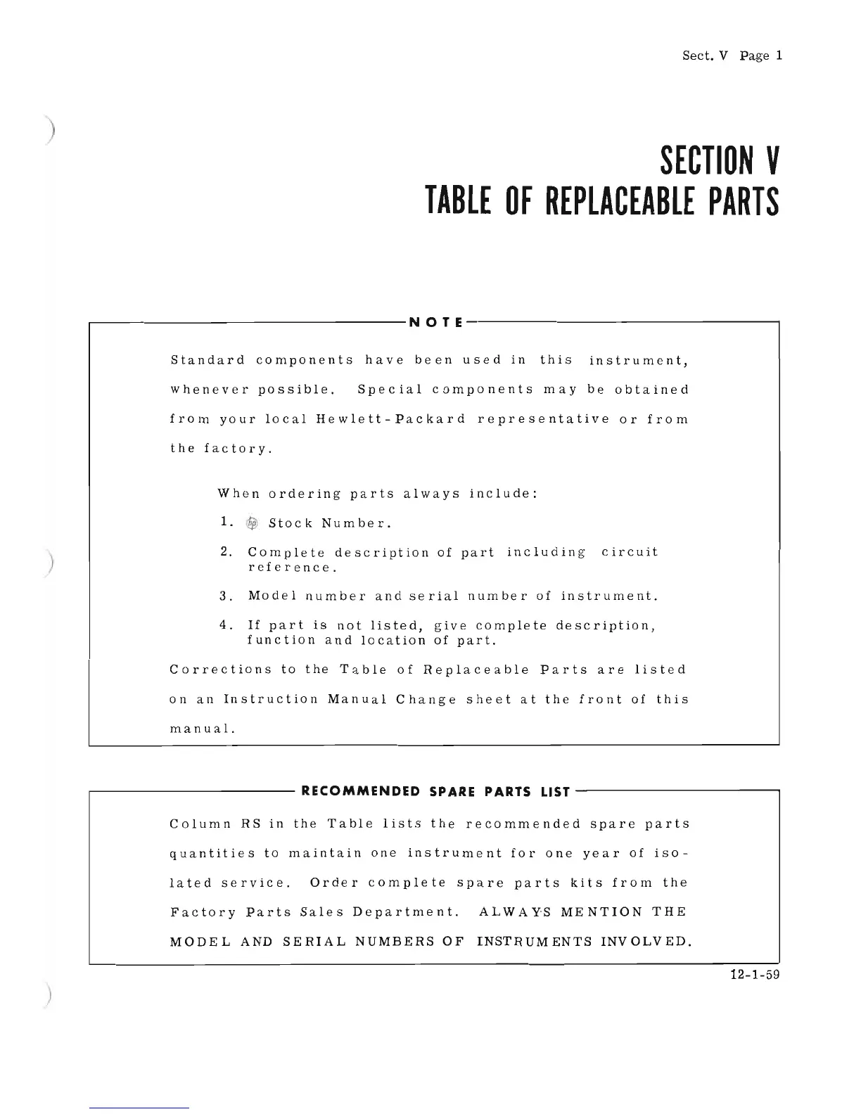 HP AR - Table of Replaceable Parts