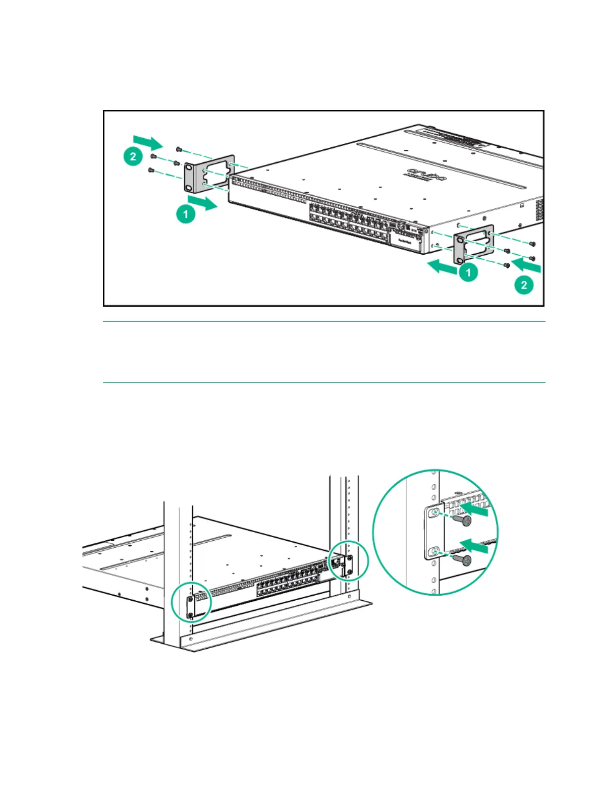 2. Hold the switch with attached brackets up to the rack and move it vertically until rack holes