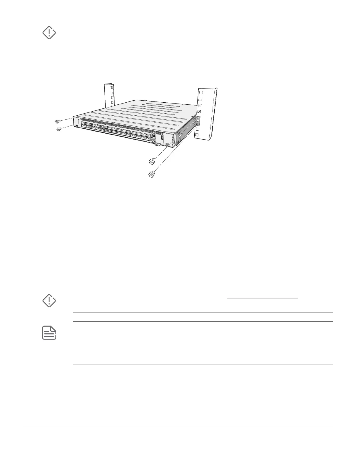 The brackets must only be attached for front-flush mounting the switch in a four-post rack. Secure the rack in