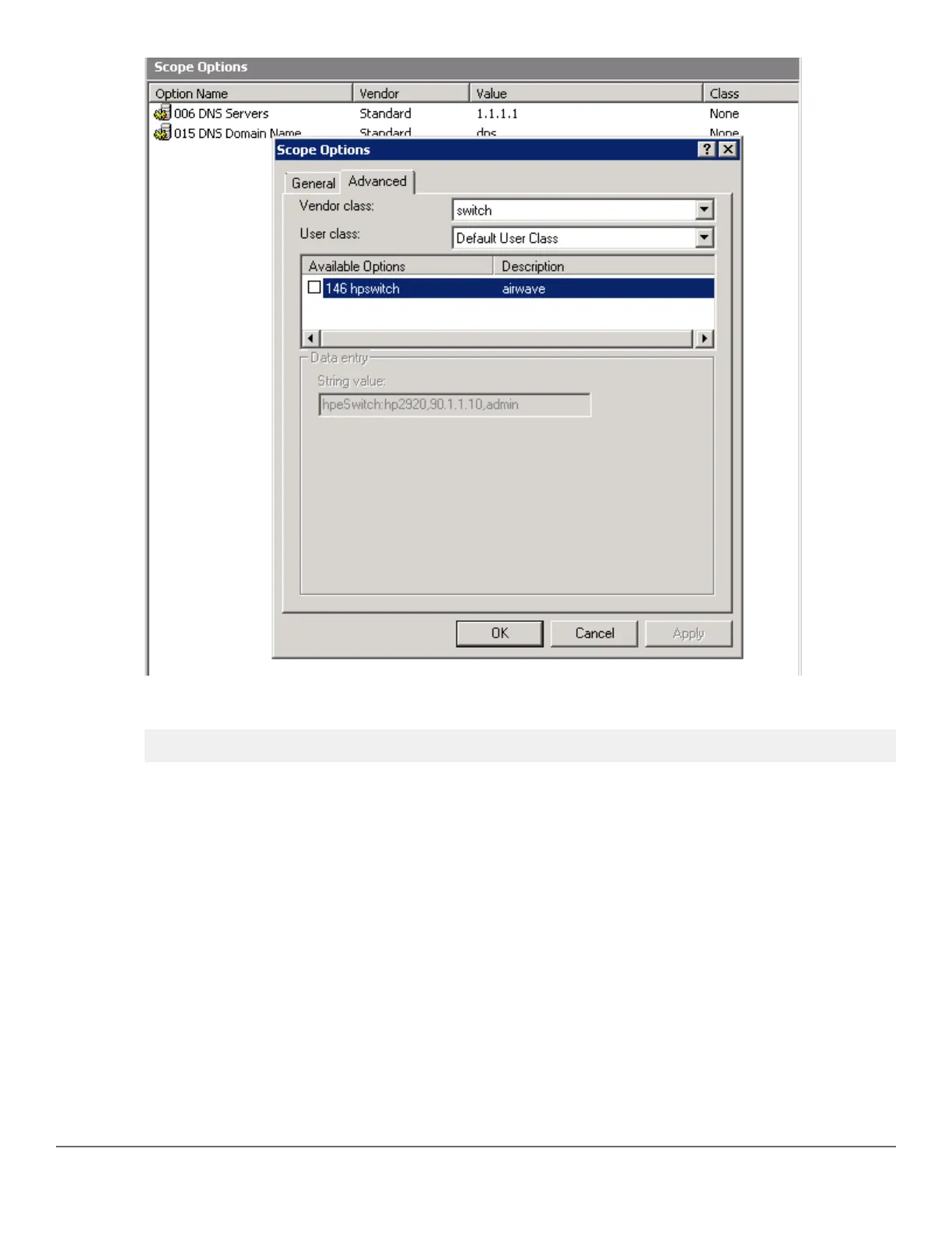 option ArubaInstantAP.img code 145 = text;