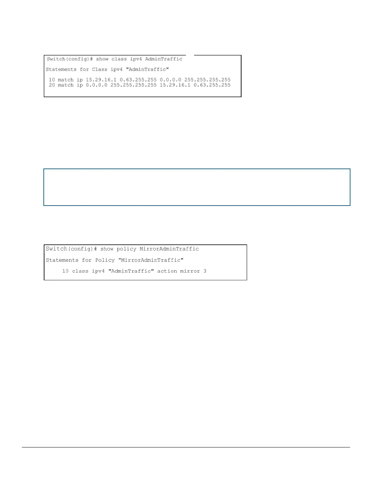 Additional variants of the show policy command provide information on policies that have been applied to ports