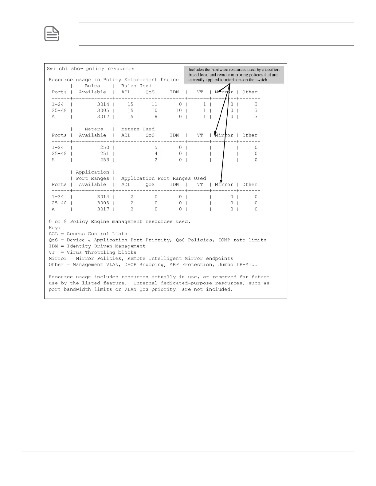 Figure 63: Displaying the hardware resources used by currently configured mirroring policies