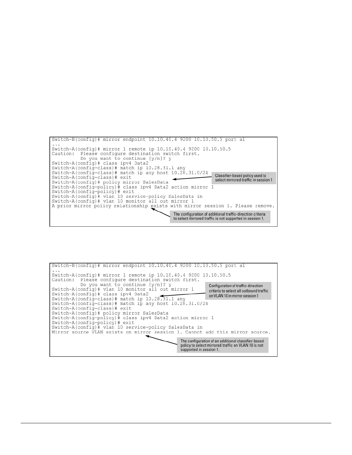 • Only one classifier-based mirroring policy is supported on a port or VLAN interface. You can, however, apply a