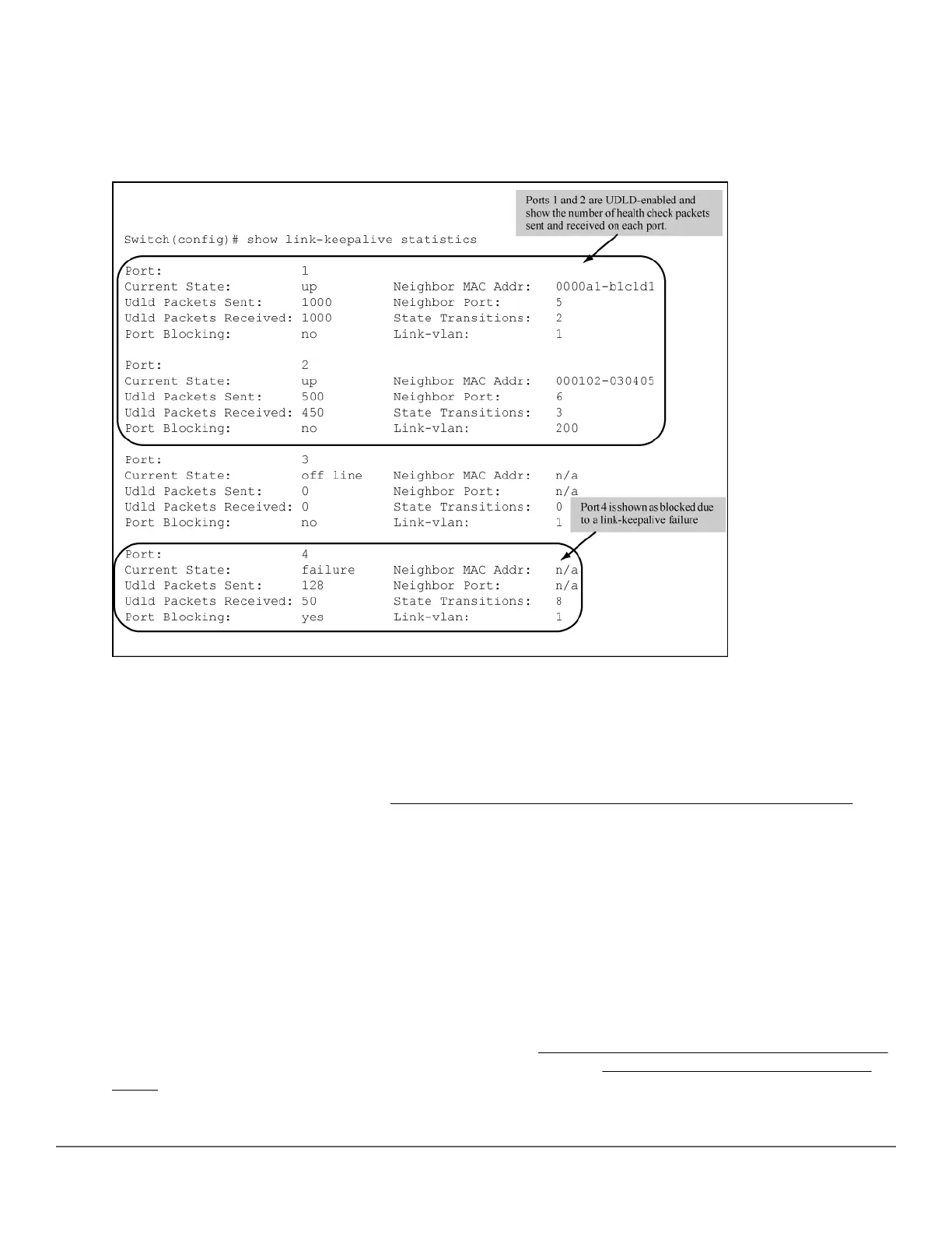 keepalive statistics display (see Figure 8: Example: of show link-keepalive statistics command on